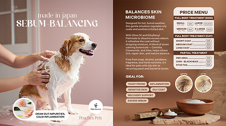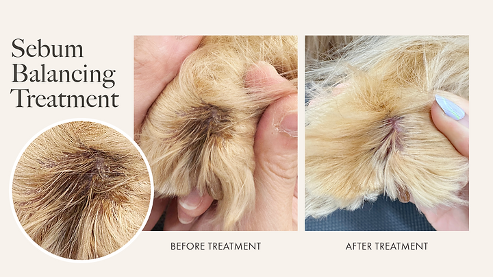 Bring your pet’s coat back to its healthiest state with our Sebum Balancing treatment. This specialized service is designed to regulate excess oil production and nourish dry areas, promoting a balanced, clean, and healthy skin barrier. Perfect for pets with oily coats, flaky skin, or yeast infections, this treatment soothes irritations, reduces build-up, and leaves your pet’s coat refreshed, soft, and naturally radiant. Ideal for all breeds, this is more than grooming—it’s skincare tailored for your pet. Full Body (Dog): $45 / $65 / $85 / $125 Localised Area: $12 per area Full Body (Cat): $60 / $70 / $85 Stud Tail: $35 Blackhead Chin: $25
